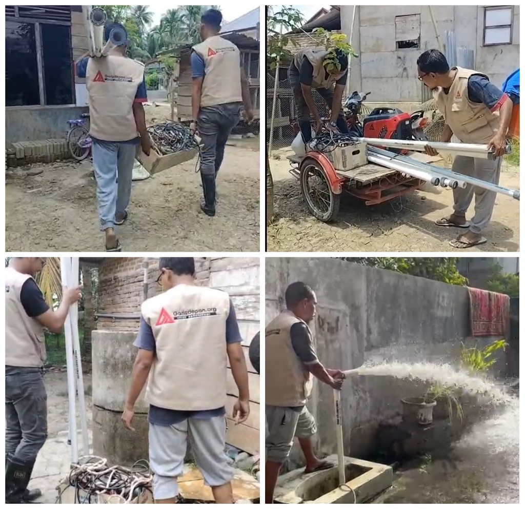 Kami menjalankan program berkesinambungan untuk area terdampak bencana. Salah satunya adalah program Rehabilitasi Air Bersih. Ini adalah program pemulihan sumur warga yang terdampak bencana banjir bandang di Aceh. Tujuan program ini: membuat air sumur bersih kembali, layak minum, layak masak